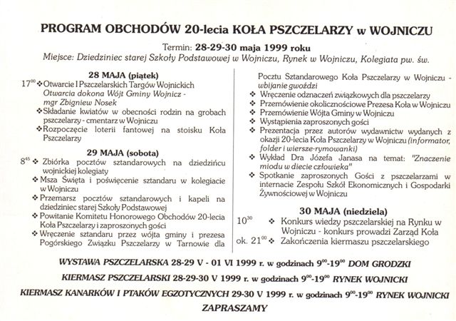 Uroczystości 20-lecia działalności Koła Pszczelarzy w Wojniczu